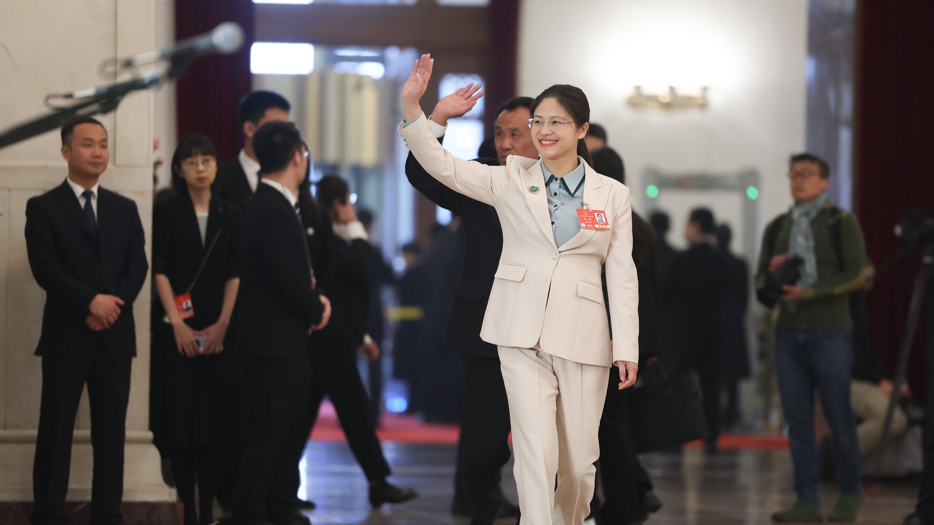 3月8日8:00—8:40(第二次全体会议前),在人民大会堂中央大厅北侧举行十四届全国人大三次会议第二场“代表通道”集中采访活动,邀请部分全国人大代表接受采访。