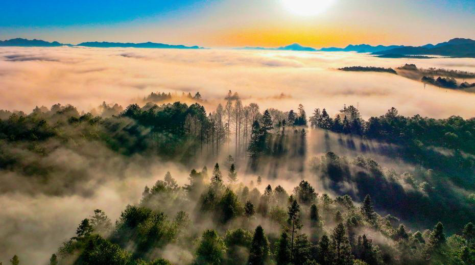 3月10日,贵州省毕节市赫章县阿西里西·韭菜坪景区迎来春雪与云海同框的绝美景观。