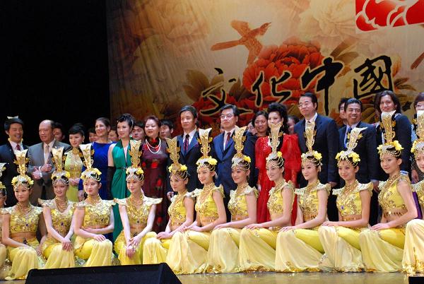 主宾在观众欢呼声中谢幕合影。