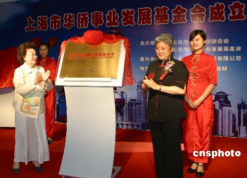 九月十八日晚,“上海市华侨事业发展基金会”在上海举行成立仪式,全国政协港澳台侨委员会副主任唐闻生与美国国际合作委员会主席陈香梅女士(左)为该基金会揭牌。与此同时,该基金会网站开通。中新社发 潘索菲 摄