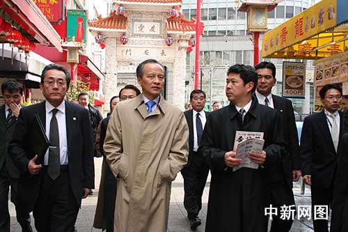 中国驻日本大使崔天凯(左二)访问神户中华街南京町。