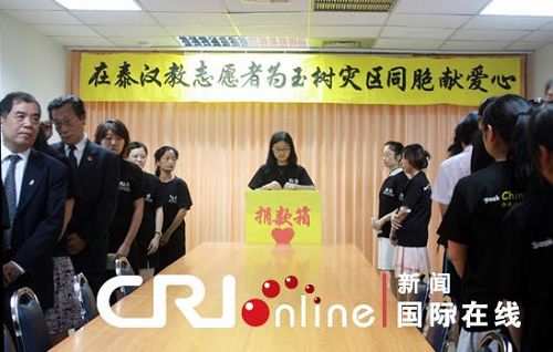 4月20日,在泰国的汉语教师志愿者代表在曼谷举行仪式,深切哀悼青海玉树地震遇难者,并捐款为灾区同胞献爱心。国家汉办驻泰国代表庞利、泰国教育部代表、驻泰汉语教师志愿者代表、孔子学院院长等50多人出席了悼念仪式。