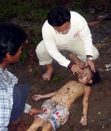 中新网7月18日电 据法新社报道,印尼海啸受灾地区——爪哇岛芝拉扎的居民在检查遇难儿童的尸体,并试图救醒一名儿童。印尼爪哇岛南部印度洋海域当地时间7月17日下午3点20分左右发生强震,引发部分地区海啸。截至北京时间18日凌晨4点45分,共有105人被证实在海啸中死亡,127人失踪。(春风)