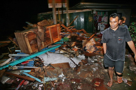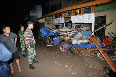 中新网7月18日电 据美联社报道,印尼士兵在灾区检查地震废墟。印尼爪哇岛南部印度洋海域当地时间7月17日下午3点20分左右发生强震,引发部分地区海啸。印尼官方称,海啸已造成至少121人死亡,80多人失踪。(春风)