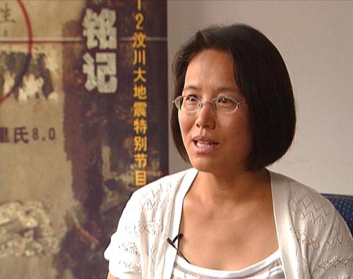 岳静玲:走进帐篷的时候,发现那个女孩,当时帐篷里躺着好多人,当碰的地下躺着好多人,有的人们在聊天,有的小孩在嬉闹,当时我发现一个女孩,一直孤独地在那儿躺着,我走向她,我拍了拍她的头,小朋友,你在睡觉?她抬起头看看我,她没有吱声,我看到了她那双很忧郁,很惊恐的眼睛,然后小朋友,你怎么不出去玩呢?她就坐了起来,她仍然把头低下去,我又抚了抚她的头,我说小朋友,你和阿姨出去玩吧,她摇了摇头,不去,这时候我明心地看她眼睛在含着泪,我觉得这孩子一定有问题,一定心中有很多的事儿,我想我明天一定要帮助这个孩子。第二天我走近了这个孩子,我把她领到了帐篷外,找了一个很僻静的地方,对她说,阿姨是从唐山来的,阿姨和你一样,也遭受过地震的灾害,阿姨也曾经失去过亲人,阿姨会帮助你的,然后我就问她,地震的时候你在哪儿,她说我在学校,你还能记住地震的情景吗?她跟我描述了一下,我说你现在有什么感受?她说我很难过,我很心痛,我说为什么?因为地震中我失去了妈妈,我出来之后我就去找妈妈,但是我没有能力去救妈妈,妈妈永远离开了我。然后我就抚了抚她的头,擦了擦她的泪,我说你非常想妈妈是吗?是。我说妈妈非常爱你?是,我也很爱妈妈。然后我跟她说,你坐在这边,假定你是你妈妈,你坐在你妈妈的对面,如果说你是你的妈妈,你应该对你的女儿说什么?看到女儿伤心,妈妈会怎么样?她说我妈妈肯定会说,孩子,不要伤心,妈妈很爱你,妈妈永远爱你。我说你会说什么?她说我会说妈妈,我很想你。她妈妈说,好孩子,妈妈希望你坚强地活着,妈妈希望你活得快乐。我说你还有什么对妈妈说的?她停了好长一段时间,她说妈妈,你放心吧,我一定快乐地活着。当时这孩子跟我讲了以后,其实我也特别悲痛,因为孩子在哭,我的泪在往下流,其实我也觉得我回到了悲伤的那个时候,