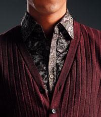 针织开衫又回归了,自称绅士的Chuck 当然不会拒绝它的诱惑,搭配闷骚的彩色暗条纹西服套装散发成熟魅力,唯一不能戒掉的就是亮色丝巾和Chuck 式坏笑。