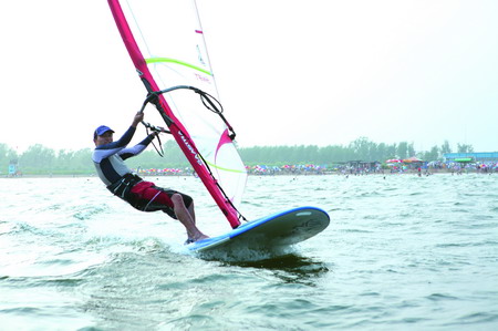 还没有到达基地,就远远地看到海面上数十只帆板,轻盈如鸥,自由翱翔。迫不及待地踏上帆板,才发现帆板没有想象中那么简单。帆,死活拉不起来;板,更是不听使唤,站立不稳。如此闪转腾挪,不停地落水上帆。折腾了半个小时,突然一阵海风吹来,帆板意外地滑行了20~30米。驭风而行是如此的真实,那种自由和站在地上完全不一样,整个身心都在飞扬,此次,方体验到帆板的妙处。