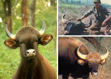 印度野牛产于南亚,与被驯养的家养牛同属一脉,现在也是濒危物种。野牛因为肉味道鲜美,因此经常遭到捕杀。