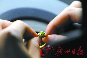 陈先生昨日拿了一只蓝宝石戒指到该中心检测。检测结果显示:“扩散蓝宝石”。据广东省珠宝玉石及贵金属检测中心主任郭清宏介绍说,这枚蓝宝石是处理过的,实际价值是1000多元。陈先生大呼上当。他说,这枚戒指是在泰国曼谷的旅游景点花了1.4万元购买的,“得知泰国是世界珠宝生产加工的重要基地,看着这枚宝石又非常漂亮,销售人员用中文介绍说是天然宝石,而且还有证书,于是就心动了。”