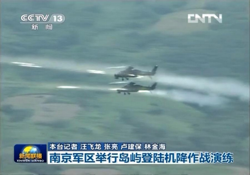 武直-10攻击直升机发射火箭弹攻击地面目标