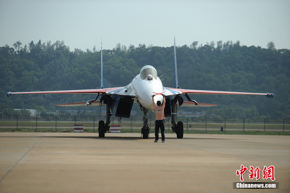 俄罗斯勇士飞行表演队苏27抵达珠海航展现场。陈海峰 摄