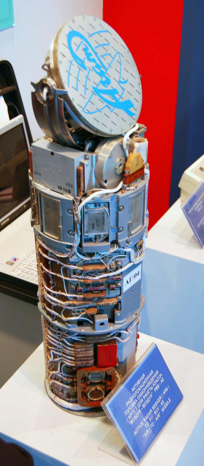 据俄罗斯媒体称,上世纪80年代研制而成的R-77中程主动雷达制导导弹能够实现发射后不管,最初同样由乌克兰“阿尔焦姆”公司生产,但在苏联解体后停产。90年代中期俄罗斯“信号旗”设计局自行组织批量生产出口型R-77导弹,代号RVV-AE,使用改进型自导弹头。随后RVV-AE导弹成为所有苏-27和米格-29系列新型和改型战机不可分割的一部分,成为战术导弹武器集团的出口拳头产品,创造了丰厚的外汇收入,其中仅向中国就供应了大约1500枚,向印度供应了至少800枚,现在还在继续供应。另外还在向其他一些国家出口。(图为R-77的导引头,它也是PL-12的技术来源之一)