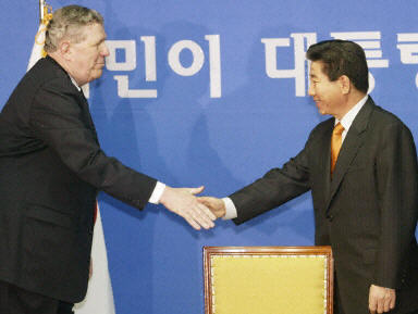 据路透社消息,卢武铉是在此间会见来访的美国总统特使、美国务院负责东亚及太平洋事务的助理国务卿凯利时提出上述原则的。
