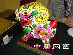 据悉,从二00二年九月中下旬开始,恒源祥出资一千五百万,与五十多家媒体联合征集二00三年中国羊年吉祥物。最后,陕西宝鸡民间艺人胡新民的泥塑羊在三千多件参赛作品中脱颖而出,并同时入选羊年生肖邮票。本次赠送的金羊将是与泥塑羊一模一样并且重量相等,达一千一百七十二克的纯黄金制品。