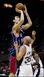 NBA全明星赛的投票自去年11月14日开始,到今年1月12日结束,并且给球迷提供了多种投票形式进行投票。在总共的450多万张选票中,姚明的得票为1286324张,列全联盟第四,超过了前NBA第一中锋、湖人队的“大鲨鱼”奥尼尔,他也因此成为继1995年的希尔之后首位入选全明星首发阵容的新人、自1998年邓肯之后首次入选全明星赛的新人、NBA历史上的第五位全明星新人中锋。