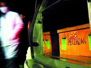 十分钟后,一个印有“LIPEIZHONG”字样的黄色棺木抬了下来,顿时,哭声一片。