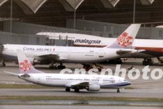 台湾中华航空公司的客机降落在香港机场的资料图片。作者:贾国荣