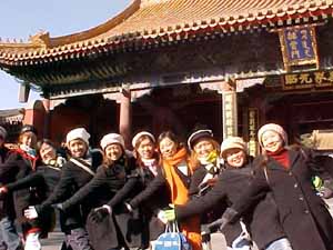 课后,全体台生乘车到颐和园,用半天时间参观北京这一代表性皇家园林建筑。在曲尽其妙的颐和园长廊里,在巧夺天工的园林建筑中,在冰冻如镜的昆明湖上,来自亚热带祖国宝岛、大多未见过冰雪世界的台生们,在此尽情地观赏着、嬉戏感受着,充分印证着课堂上学到的知识内容。