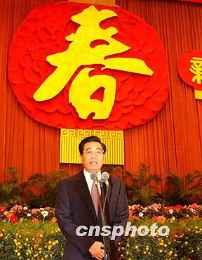 中共中央总书记胡锦涛主持团拜会。他代表中共中央、国务院,向全国各族人民,向广大工人、农民、知识分子和干部,向人民解放军指战员、武警官兵和公安干警,向各民主党派和全国工商联、各人民团体和各界人士,表示节日的问候。他向香港特别行政区同胞、澳门特别行政区同胞、台湾同胞、海外侨胞,致以良好的祝愿,并向关心和支持中国现代化建设的国际友人,表示衷心的感谢。他祝大家新春愉快,身体健康,阖家幸福!