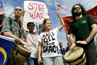 在泰国,5000多名泰国各界民众在曼谷举行声势浩大的反战示威,强烈反对美国企图对伊拉克发动战争。