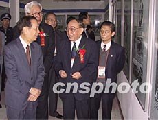 国务院副总理钱其琛(左一)、全国政协副主席罗豪才(左二),十五日在泉州饶有兴致地观看二十世纪华侨华人图片展。作者:刘可耕