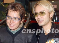 香港歌星谭咏麟、李克勤二月二十日出席香港新城电台节目的《家天下》访问活动。中新社传真 钱兴强 摄