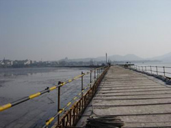 据中广网报道,围堰两边是截然不同的风景:一边是碧波荡漾,游船点点的秀丽西湖;一边是湖底黑色的淤泥。中间围堰有两米多宽,全部用沙袋垒成,两边用钢质构件固定,十分牢固。两侧水位的落差有三四米。抽干的湖底呈椭圆型,有几台小型水泵仍在工作,抽出从地下渗出的湖水。