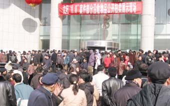 中新网2月21日电 昨日下午,沈阳各界人士纷纷涌向“慕马”案件没收物品公开拍卖展示现场——金剑大厦,由于展示现场空间有限,加上事先没有预料到有上万观众前来观看,所以部分观众被“拒之门外”。