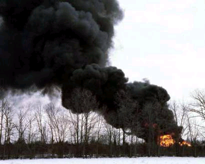 中新网2月22日电 美国当地时间2月21日(北京时间22日)消息,美国安大略湖附近一列装载有液化石油气的火车出轨造成液体外漏,引发大火,当地居民已经疏散,但伤亡情况尚不明。(春风)