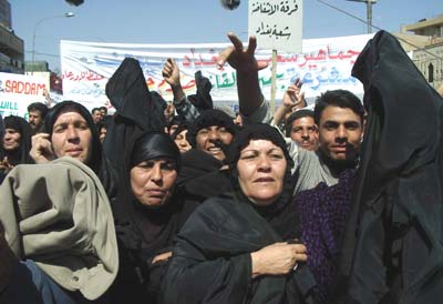 在战争中死去亲人们的母亲们也上街支持萨达姆。(春风)