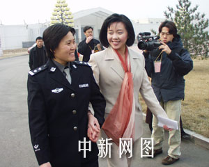 上午十时左右,身着米色套裙、白色皮鞋的滕春燕从位于北京大兴的一所监狱中走出来的时侯,与紧随其后的两位女警员相拥告别。面对早已等候在大门外的十多位中外记者,滕春燕兴奋地说:“我现在的心情非常好。”为接女儿出狱,滕春燕的父亲滕玉本专程自外地来到北京。