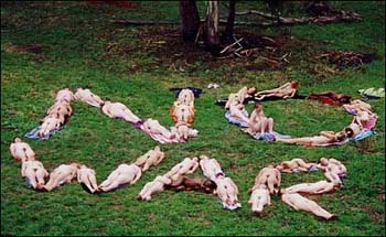 中新网3月27日电 据国际在线报道,当地时间3月25日,在澳大利亚亚塔斯马尼亚岛东南岸港口城市霍巴特。35名妇女全裸在旷野摆出“NO WAR(不要战争)”的字样反对澳大利亚政府支持美英联军对伊发动战争。
