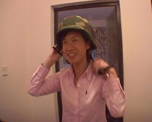 香港凤凰卫视女记者闾丘露薇在伊拉克试戴钢盔