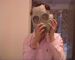 闾丘露薇在伊拉克试戴防毒面具