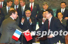 会谈结束后,两国总理出席了《中方购买三十架空客飞机的总协议》等三个协议的签字仪式。(完)