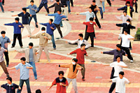 时至今日,交大校园已经恢复了平静,但这种平静不似以往长假学生离校后的爽快。一位交大同学对记者说,原来校园里到处都是人,现在该走的都走了,校园反而是最安全的地方。操场上,一些没有离校的大学生做着各种体育锻炼。