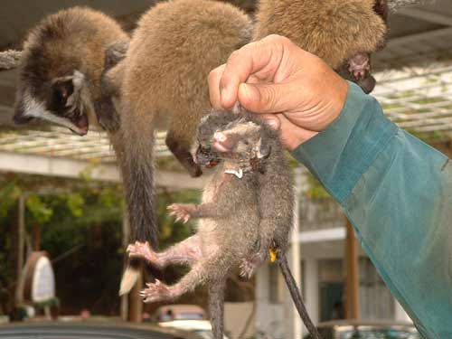 据介绍,两单位与深圳动物防疫监督站、深圳野生动植物保护站组成联合攻关小组,追溯可能受SARS感染的动物,普查多种动物群体,主要集中锁定哺乳动物,包括果子狸、猪獾、黄鲸、鼠獾、貉、海狸鼠、猫、兔等。
