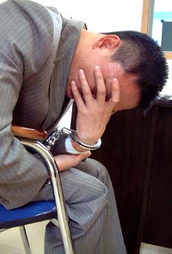 李忠文今天接受记者采访时,始终用双手捂着脸,满脸通红,眼泪直流。他辩称,因公司摊子过宽(全国80多家连锁店)、计划过大(向国家工商总局注册了100个皮鞋商标),资金链出现问题,以致供货商停止供货并追讨货款,导致他“中国鞋王”梦想破灭。(作者:颜海均)