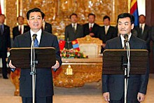 | 5月26日至6月5日,胡锦涛主席将对俄罗斯联邦、哈萨克斯坦共和国和蒙古国进行国事访问,并出席在莫斯科举行的上海合作组织成员国元首第三次会晤、在圣彼得堡举行的建市300周年庆典和在法国埃维昂举行的南北领导人 |