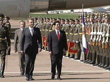 法新社报道胡锦涛访俄的消息说,中国国家主席胡锦涛周一晚对俄罗斯展开为期一周的访问行程,与俄罗斯总统普京举行了非正式会谈。这是胡锦涛三月份成为国家元首以来,首次出国访问。法新社说,中国国家主席正在进行为期十天的出访,他还将前往举行八国集团首脑会议的法国旅游胜地埃维昂,以及哈萨克斯坦和蒙古。但是俄罗斯是此行的首站,也是停留时间最长的一站,体现了中国对中俄特殊双边关系的重视。法新社的报道还说中国可能利用在埃维昂的机会展开一轮传统的双边外交。
