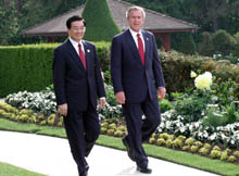 报道6月1日援引美国一位高级官员的话说,美国总统布什与俄罗斯总统的会谈气氛十分融洽,双方就许多国际性问题交换了意见,当谈到伊拉克战后重建时,布什总统明确地表示,虽然美国目前控制着伊拉克,但是,在战后伊拉克的石油生产方面并不是抛开别的国家,更加不会想方设法将俄罗斯的石油公司挤出伊拉克,或者破坏他们在伊拉克的利益。