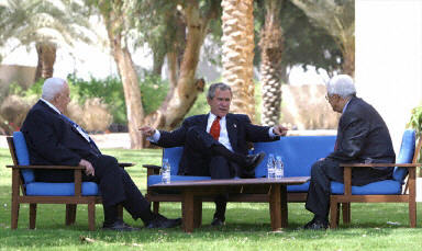 布什主持了巴勒斯坦自治政府总理阿巴斯与以色列总理沙龙之间的峰会,随后结束就任总统两年半来首次亲自到中东进行谋和的访问。