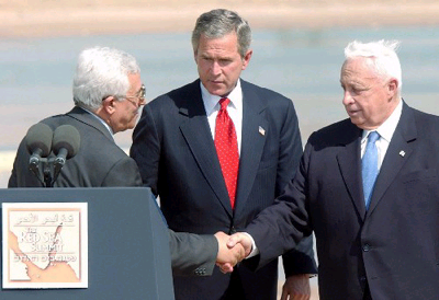 2002年6月24日,美国总统布什发表针对中东问题的演讲,提出允许巴勒斯坦人在2005年建立一个与以色列和平共处的独立国家,前提是巴勒斯坦人必须更换他们的领袖阿拉法特,必须无条件制止和打击针对以色列的恐怖袭击。