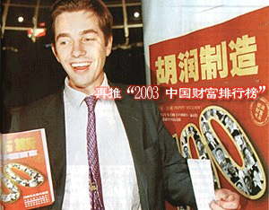 胡润(Rrpert Hoogewerf),英国人,今年33岁,曾任美国著名的财富杂志《福布斯》(Forbes)的中国地区首席调研员。