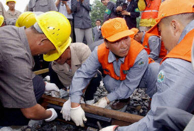 对于今天铁路连接一事,双方处理得十分低调,两国最高领导人没有参加连接仪式,只有局长一级的出席。而去年9月18日的奠基仪式韩国有1000多名官员参加,朝鲜更有3000多名官员出席仪式,两国总理也都到场。(闻新芳)