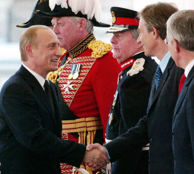 英国王储查尔斯亲王到希思罗机场迎接普京和夫人,然后共同驱车到伦敦市中心与英国女王和首相会面。