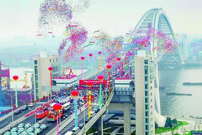 江泽民题写桥名 卢浦大桥通车创“十最”(多图)