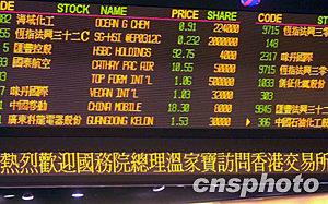 中新社香港六月三十日电 国务院总理温家宝今天下午在香港特首董建华及财政司司长梁锦松陪同下参观香港交易所。温家宝到场时,在场交易所工作人员纷纷站立,且以热烈掌声欢迎总理一行。