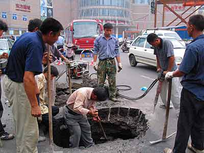 据介绍,南京的地质状况较复杂,地下水位高,有较多的古河道及大量含水砂层、断裂破碎带、软流塑地层等不同地质情况。昨日塌陷的两处位于新街口闹市区,一处在三元巷加油站门口,另一处在新街口转盘的东南角。两处塌陷时间大约在下午4时左右,塌陷后没有造成人员伤亡,但给新街口的交通造成一定影响。市政部门立即在塌陷处设置了警示标志,并有交警在现场指挥交通。下午5时多,南京市政110的赶来抢修。