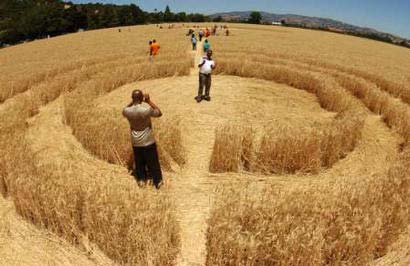 研究人员并不是到现场的唯一人群,数百名当地民众也聚集到现场,一些人站在怪圈里忙碌地用计算器计算,另一些人则对眼前的一切感到非常惊奇,还有一些人像对待黄金一样地小心翼翼的收集怪圈里的小麦。